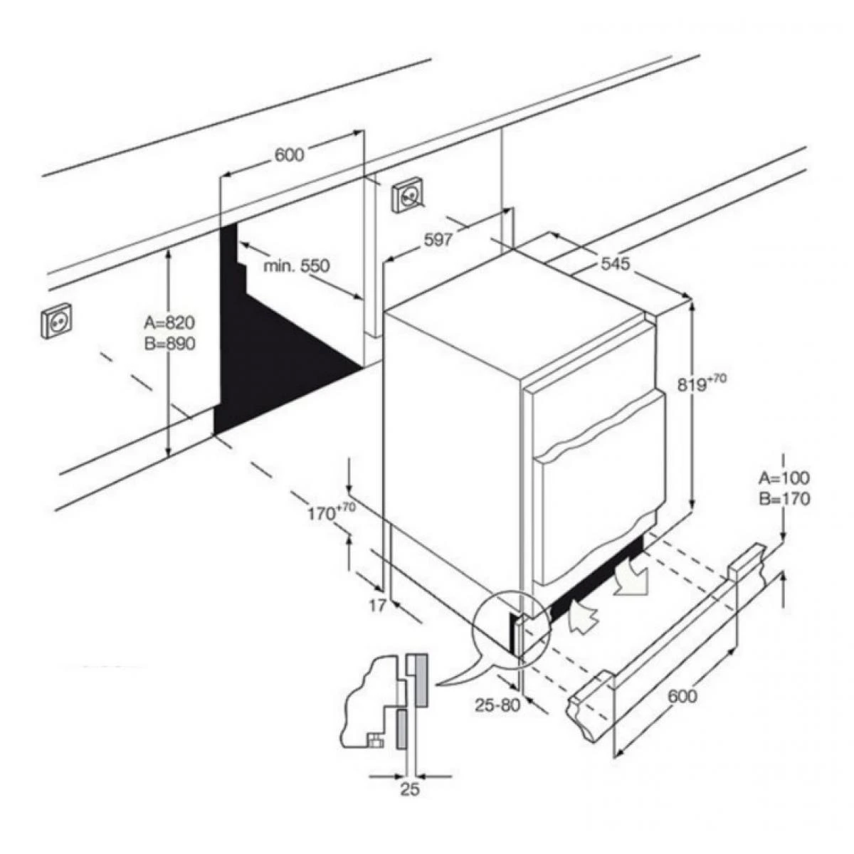 Dim. encastrement (HxLxP en cm) : 82 x 60 x 55.